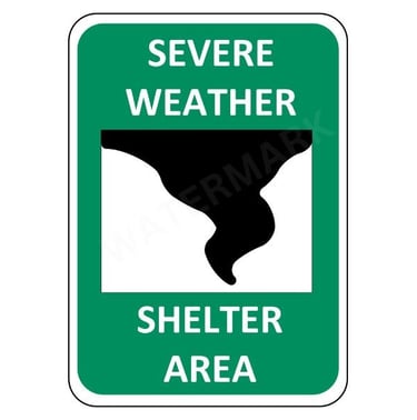 Ensure maximum safety during extreme weather events with our Severe Weather Shelter Area Sign, designed to clearly identify designated shelter locations during tornadoes, hurricanes, and severe storms.