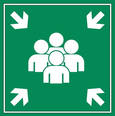 Emergency Assembly Point Sign – Green Safety Meeting Area Symbol with Group of People and Arrows for Evacuation Use